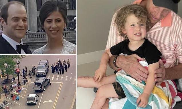 A two-year-old boy who was discovered following the Highland Park shooting alone, covered in blood, and taken from beneath his father is now an orphan because both of his parents perished in the assault.