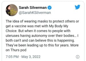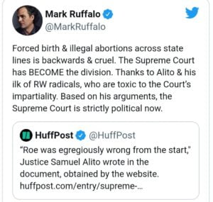 “Let’s see and hear all the Good men out there (because there are many )stand with us now stand up to the barbaric Tyranny that is happening to American women,” she tweeted. “Stand up speak out with us and make yourselves loud now. Let’s all Get their boots off our wombs.