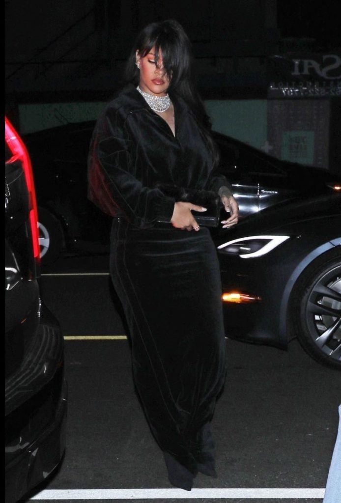 You are currently viewing Rihanna very glamorous in velvet and large necklace.