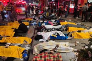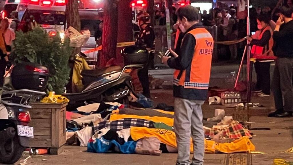 South Korean President Yoon Suk-yeol has called for hospitals to be prepared to receive the injured, the presidency said. Photographs released by Yonhap showed more than a dozen people lying in a street, rescuers assisting them as police held the crowds at bay with security cordons.